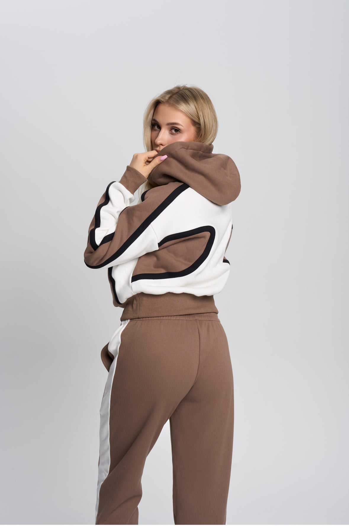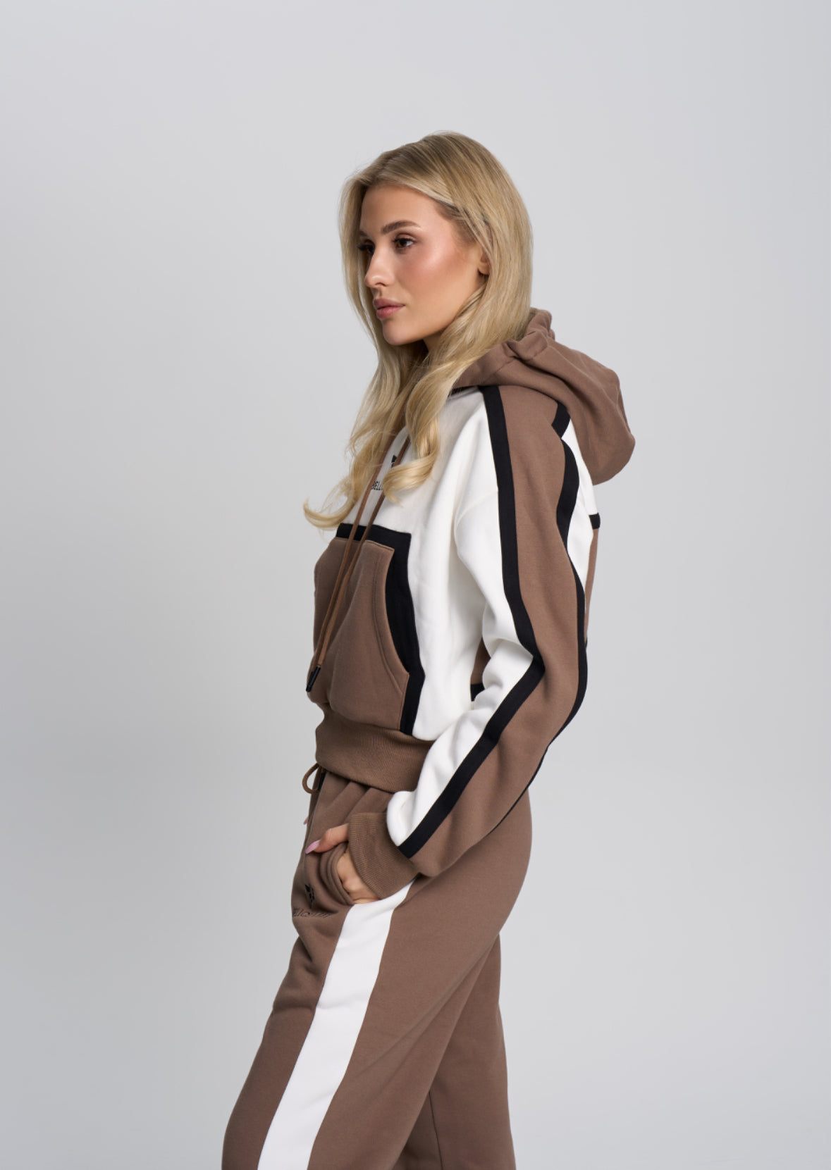Elevate your everyday wardrobe with our Brown Color Block Hoodie, a perfect fusion of comfort and style designed just for her.